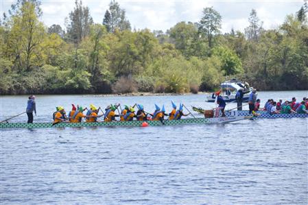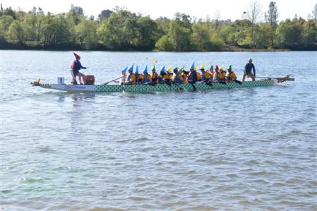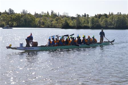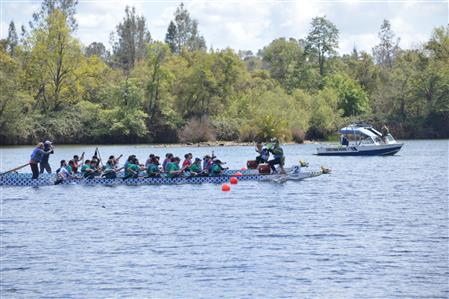 On Saturday, April 6, the Rotary Club of Folsom participated in the Powerhouse Ministries First Dragon Boat Festival on Lake Natoma. The club came in third overall and our drummer, Monika Reyes, won the best drummer of nine teams. There were three races and the teams were racing for best time overall in the first and second races. The third race determined the final order from first to last place. Folsom Rotary was in third place after the first two races so they were in the Grand Final to determine first, second, and third place. Folsom Rotary ended in third place and the team members received medals for their achievement.