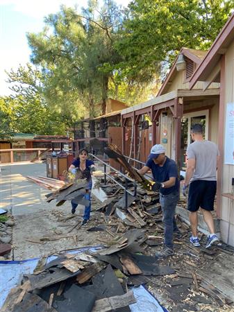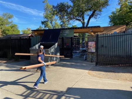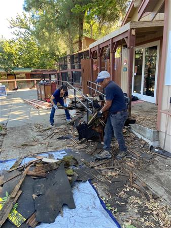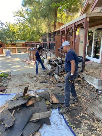 On September 9, members of the Rotary Club of Folsom picked up debris from the roofs of the gift shop and ticket booth. On September 21, new shingles will be put on the roofs.