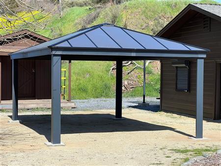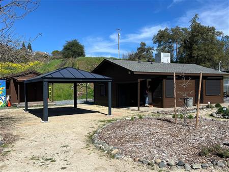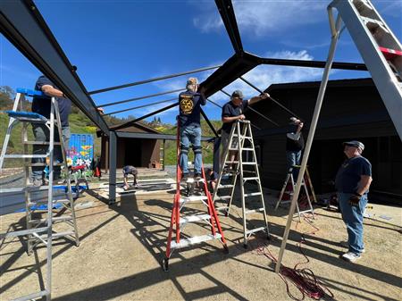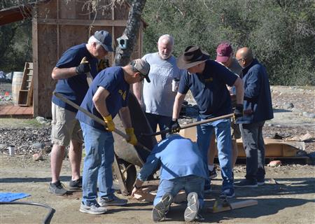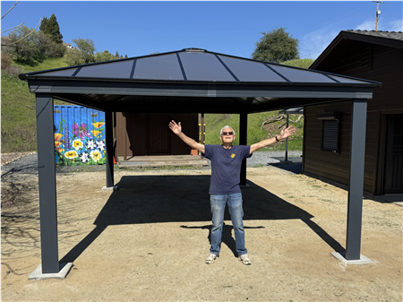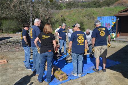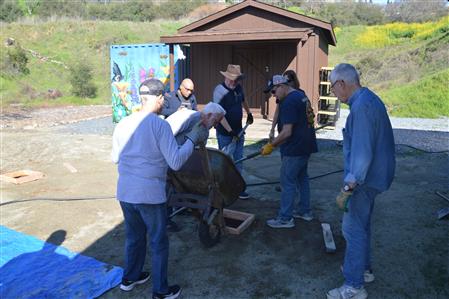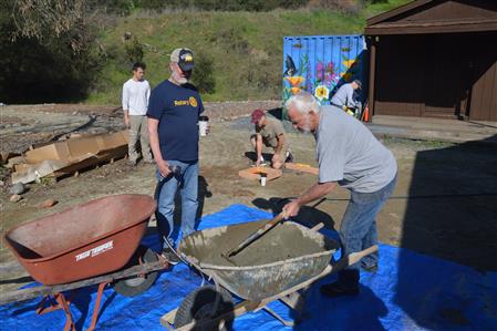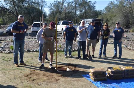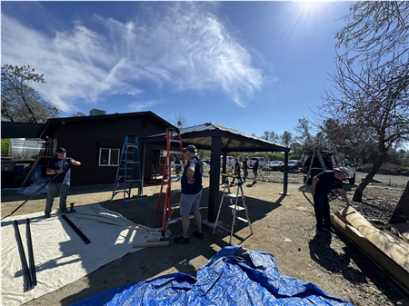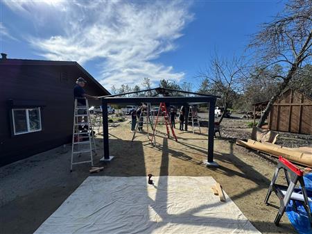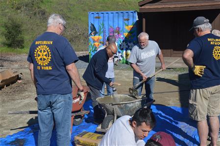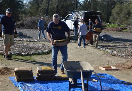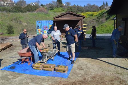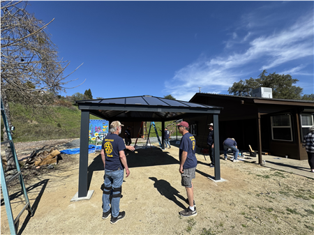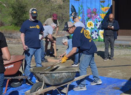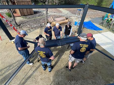 On Saturday, February 22, Rotarians from the three Folsom Rotary Clubs poured concrete footings for a gazebo next to the cabin. On Saturday, March 1, Rotarians were back at the Interpretive Center and assembled the gazebo.