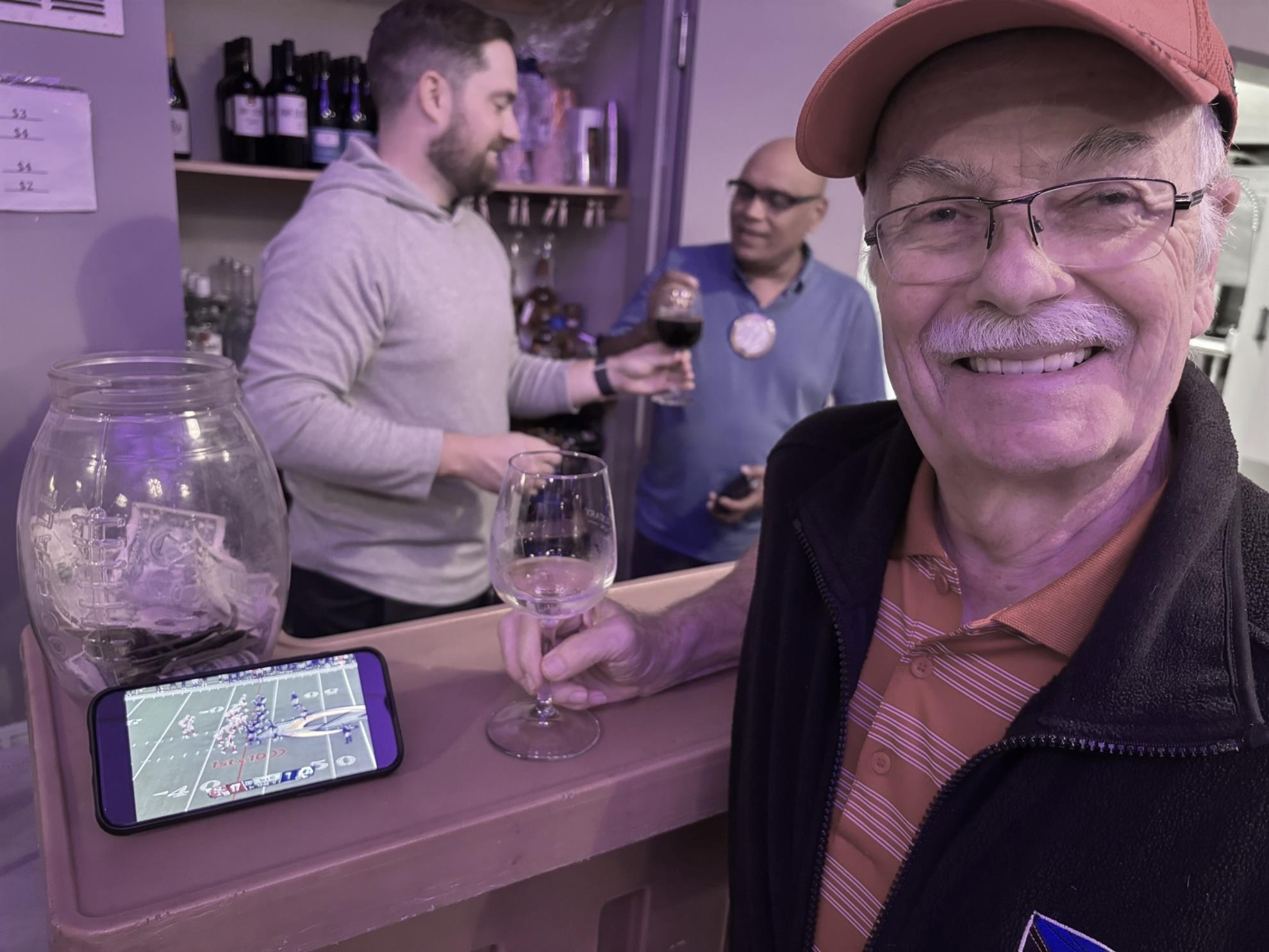Welcome to the Rotary Club of Folsom Sports Bar. Thanks to Josh Brannan and Dawn Johnson, their phones were on the bar showing the 49ers game on Prime.