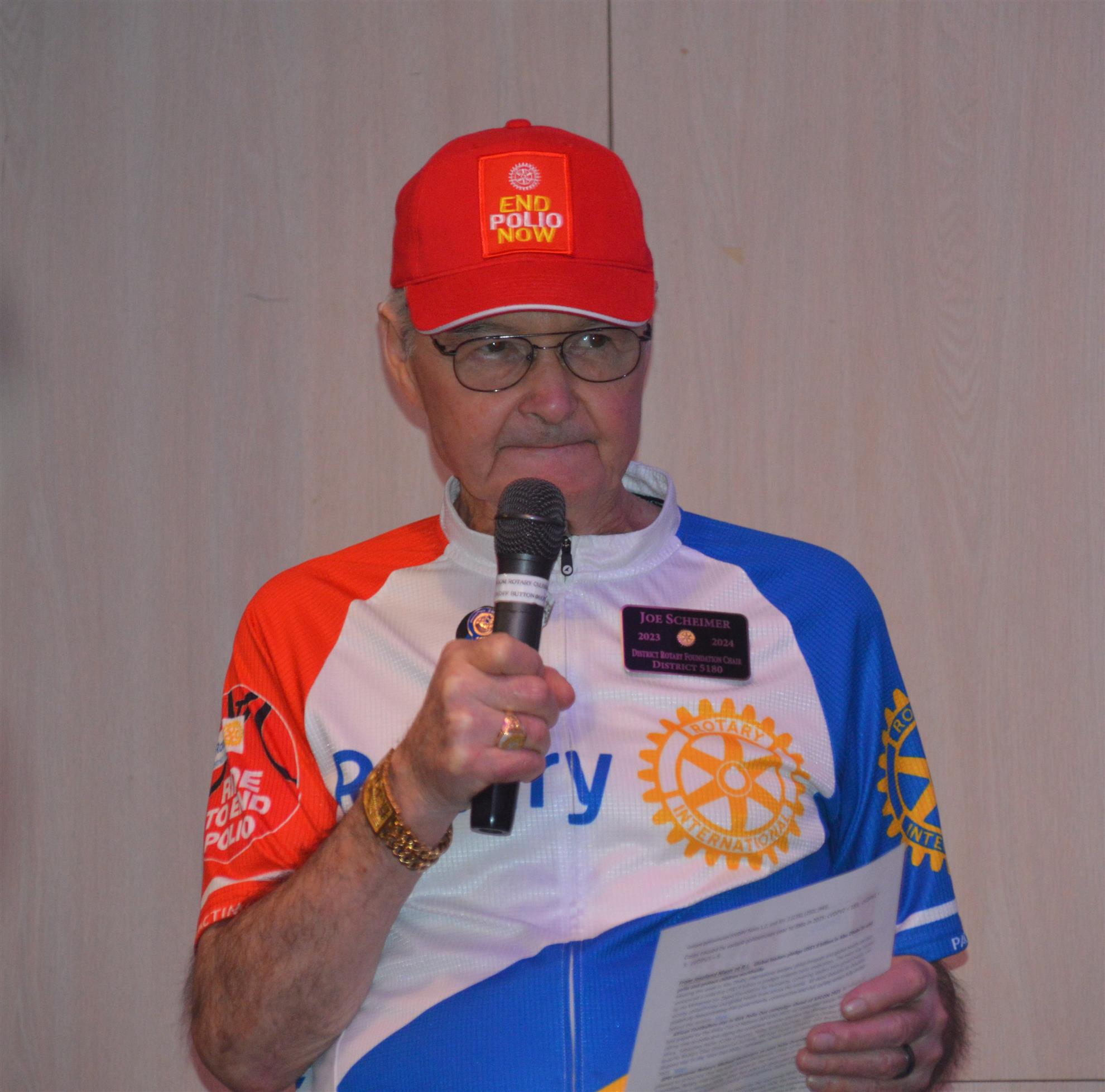 Joe Scheimer gave us an update on Polio Plus donations this year that he has collected during his fall campaign for District 5180 donations. As of our meeting, he had collected $145,000 in donations for Polio Plus. His goal was to raise $150,000 this year.