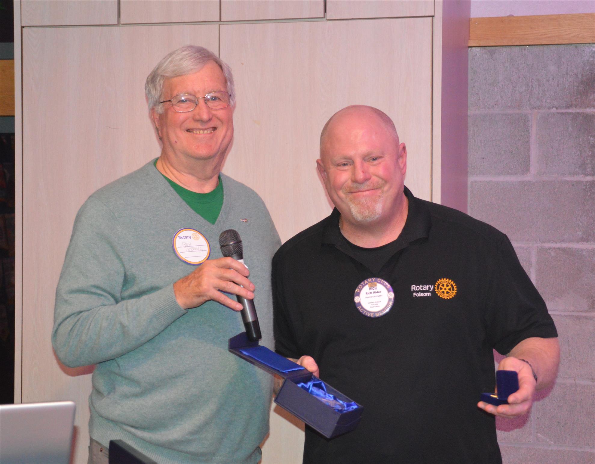 Bob Deering talked about the Rotary Foundation and that 50% of donations from the district to the foundation come back to the district as District Designated Funds that clubs in the district can apply for their projects as matching grants to club funds. Bob recognized Rich Rider as a Major Donor as Rich has donated at least $10,000 to the Rotary Foundation. Rich received a Major Donor pin and crystal.