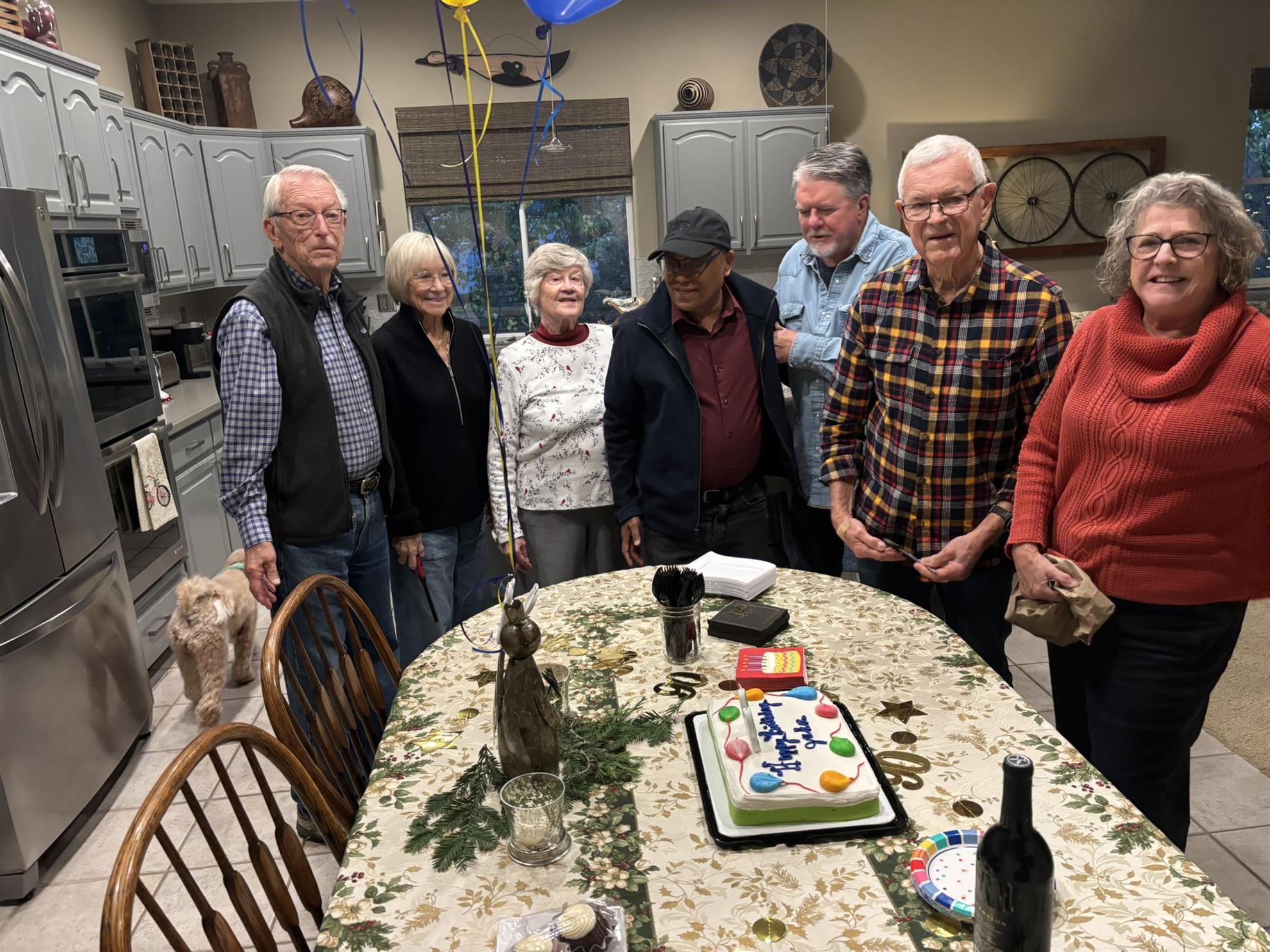 John Lindow turned 90 on December 16 and President Scott suggested that we surprise him with a little party at his home at 4 pm. Frank and Carolyn Woods picked up a cake and some balloons. Also attending the party were John Messner, Elaine Smart, President Scott, and Ramesh Dontha. John was very pleasantly surprised, and we enjoyed helping him celebrate his very special day.
