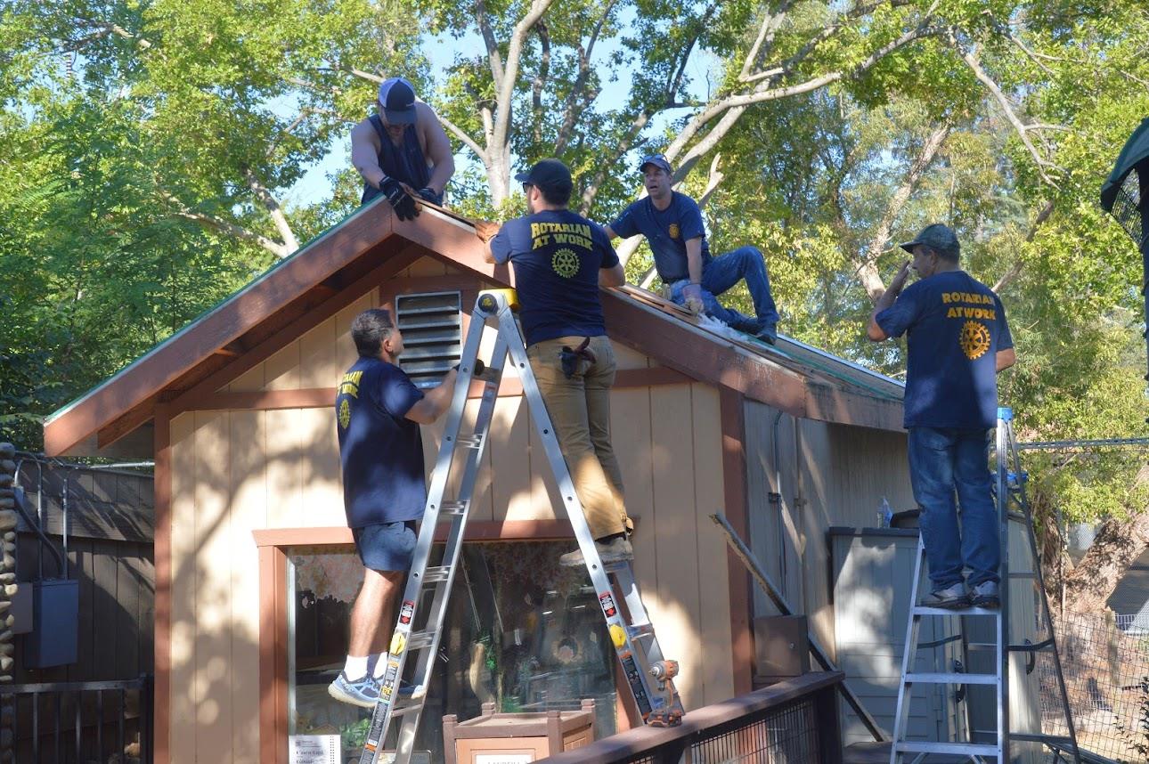 On Monday, September 15, a crew of Rotarians spent the day at the Folsom Zoo, removing the roof from the Reptile House, making repairs, and preparing it for a brand-new roof installed by Straight Line Roofing and Construction.
