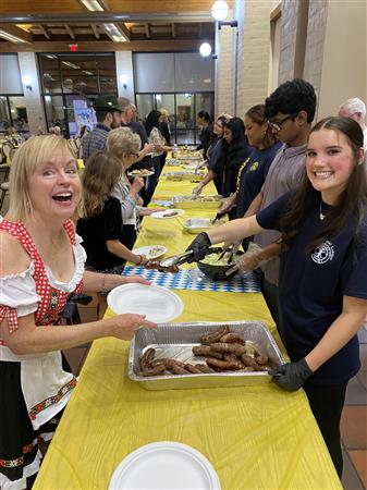 On Sunday, November 12, the Rotary Clubs of Folsom and Granite Bay held a fund-raising event called Rotoberfest at the Folsom Community Center. The event included a German band, dinner with barbequed bratwurst, boiled potatoes, sauerkraut, red cabbage, green salad, and apple strudel. We served beer and wine and also had a silent auction.