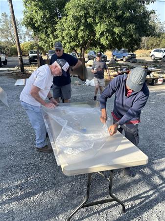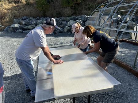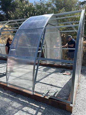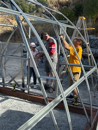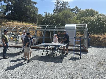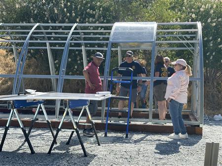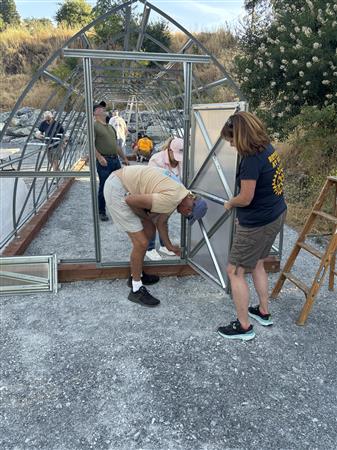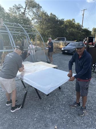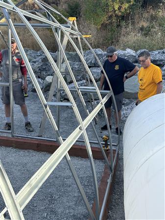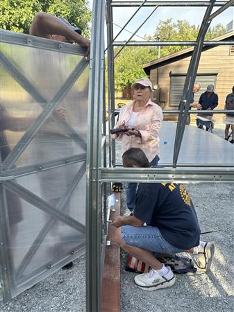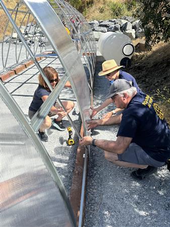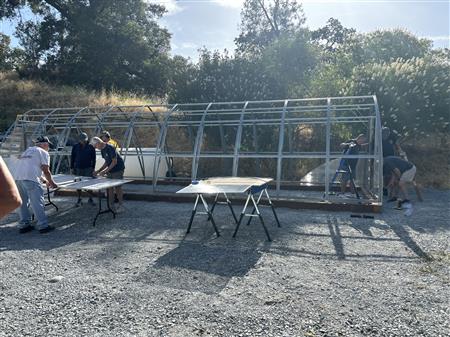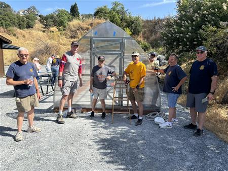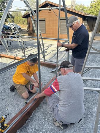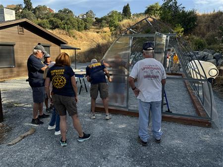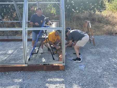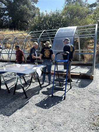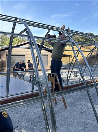 On Saturday, June 8, members of the three Rotary Clubs in Folsom started putting the walls on the Greenhouse at Black Miners Bar. Both end walls and doors were completed along with one panel on the sides.